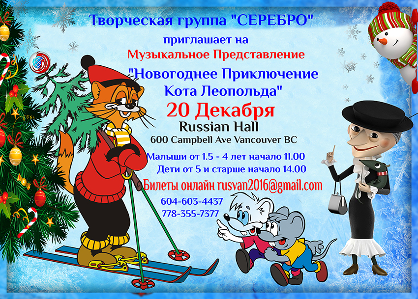Билеты на наше Новогоднее Музыкальное Представление «Новогоднее приключение Кота Леопольда» продаются онлайн: rusvan2016@gmail.com