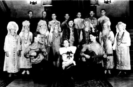 During the quarter century, numerous plays, concerts, operettas and opera excerpts were performed in different parts of the city and in Seattle. The best-known productions were: Geisha (2 times), Curantes, Little Clodina, Natalka-Poltavka (4 times), Zaporojetz from Danube, Mazepa, and others. Exceptionally successful was the production of Boyar Wedding. It was luxuriously presented to the public at the Commodore, with captivating old songs, dances and scenery. The little Russian children were not forgotten either. Numerous fairy tales, legends and concert programs were enacted in Russian with children as performers.